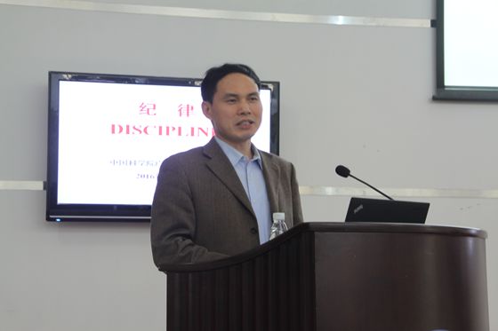 中科院廣州分院黨組副書記、紀(jì)檢組組長周傳忠作專題報告