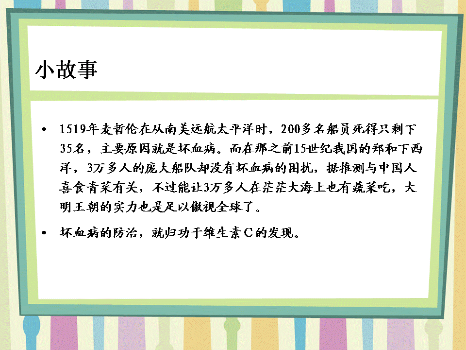 壞血病在20世紀(jì)以前曾長(zhǎng)期肆虐,死人無(wú)數(shù),到了現(xiàn)代社會(huì),壞血病早就已經(jīng)快成了被遺忘的單詞了,但是維生素C缺乏癥還是有的,特別是那些飲食習(xí)慣不夠好的人。如果你很少吃蔬菜水果,有經(jīng)常有牙齦出血啦、牙齒動(dòng)搖啦,皮膚有小的瘀斑啦的,那就很有可能是缺乏維生素C了,需要調(diào)整飲食習(xí)慣了。