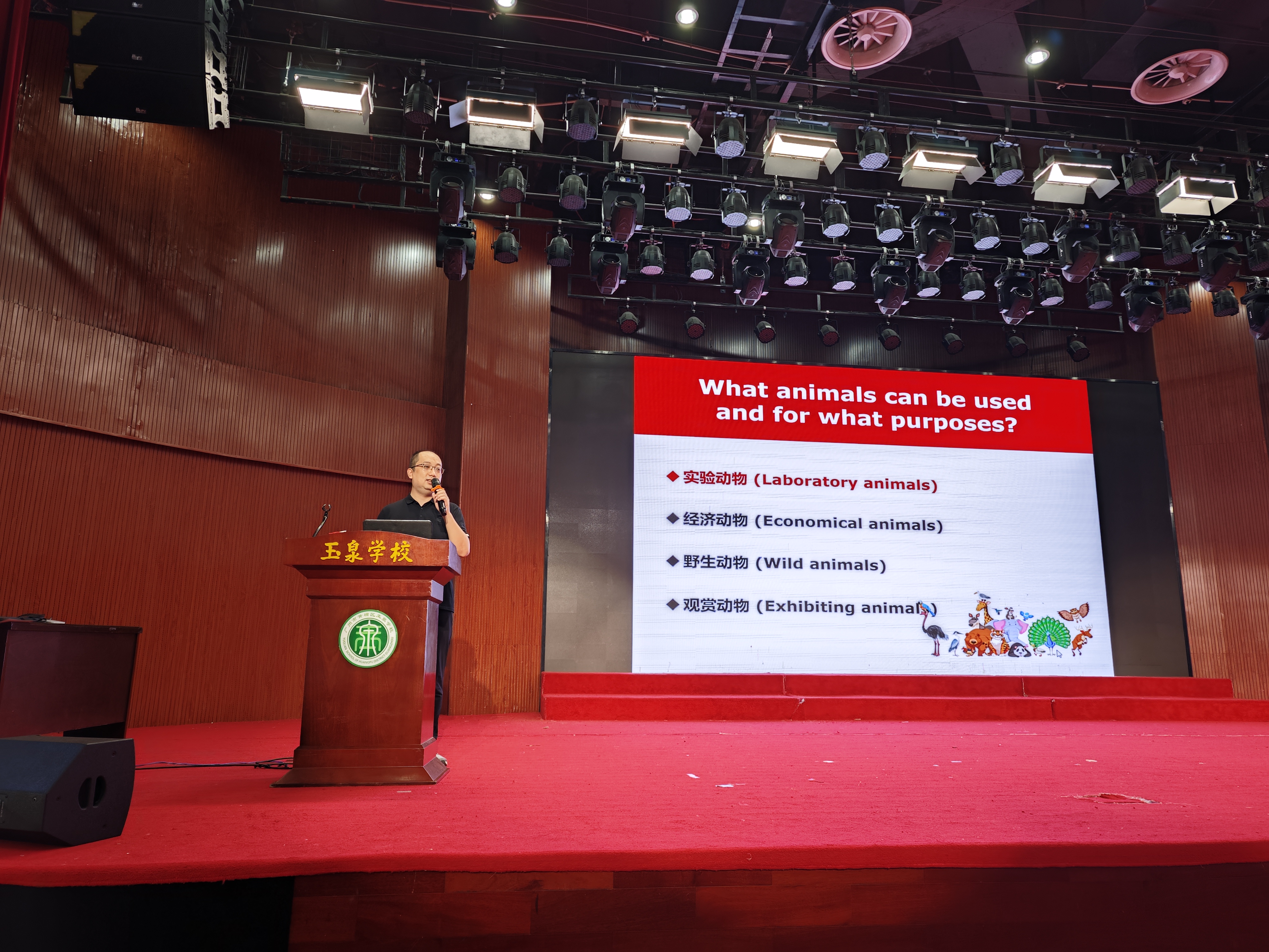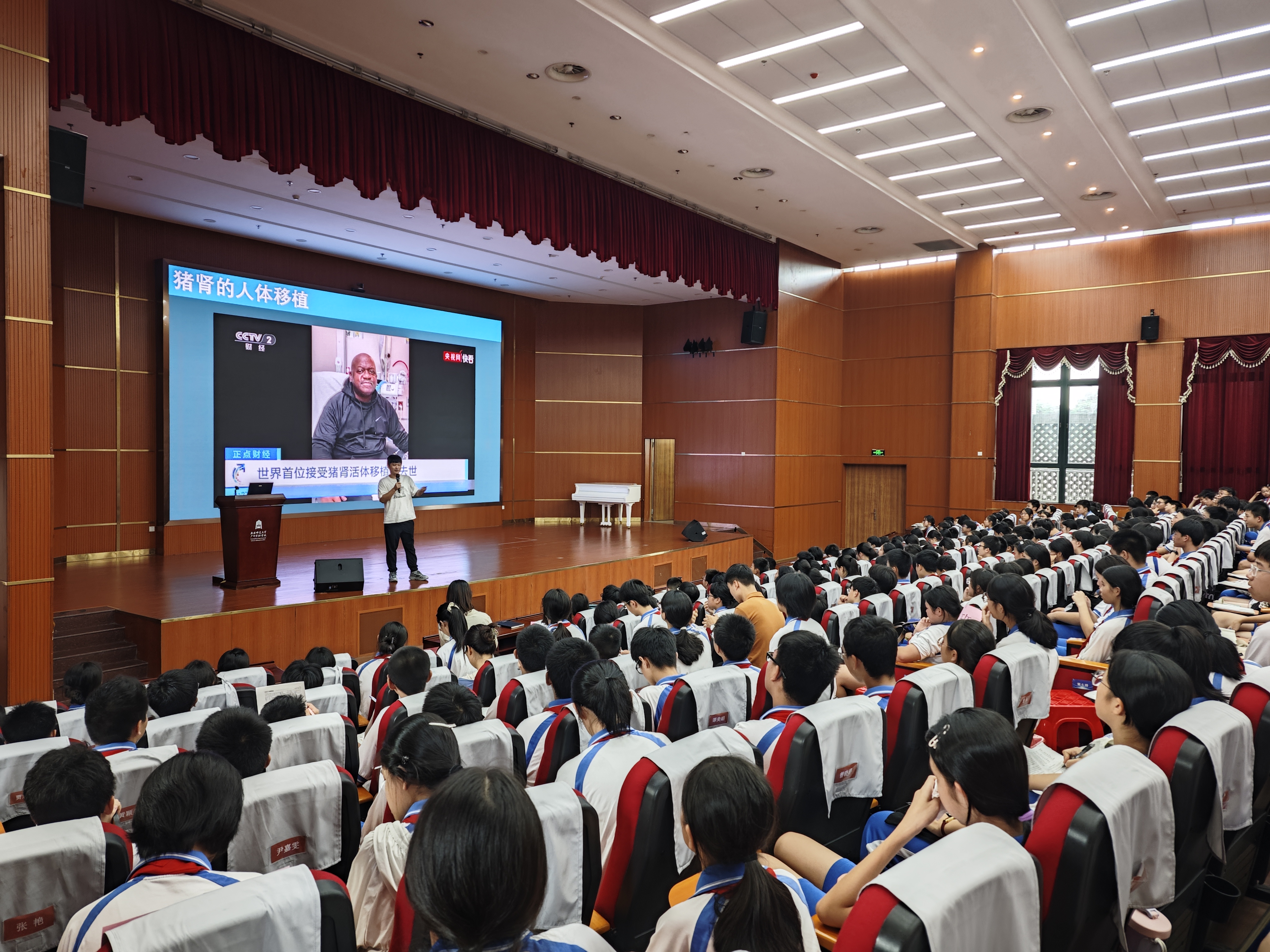三名老師結(jié)合自身研究領(lǐng)域與學(xué)生認(rèn)知特點(diǎn),量身定制講座內(nèi)容,讓前沿科學(xué)知識(shí)“接地氣”。單永禮副研究員以《神奇的干細(xì)胞》為題,講述干細(xì)胞的特點(diǎn)及目前研究成果,為同學(xué)們揭開了生命起源與再生醫(yī)學(xué)的奧秘。閆海釗副研究員帶來《趣談實(shí)驗(yàn)動(dòng)物——實(shí)驗(yàn)動(dòng)物模型在人類疾病研究中的應(yīng)用》講座,生動(dòng)地介紹了兔子、豬等實(shí)驗(yàn)動(dòng)物如何助力醫(yī)學(xué)進(jìn)步,傳遞科學(xué)研究的嚴(yán)謹(jǐn)態(tài)度與人文關(guān)懷。李磊博士聚焦《獸面仁心的二師兄——異種移植與異種嵌合》主題,深入淺出地講解了異種器官移植的前沿進(jìn)展,引導(dǎo)同學(xué)們思考生命科學(xué)的倫理邊界與創(chuàng)新價(jià)值。三場講座均設(shè)置了互動(dòng)環(huán)節(jié),學(xué)生們踴躍提問,老師耐心解答,在輕松愉快的氛圍中激發(fā)了青少年的科研興趣與探索精神。