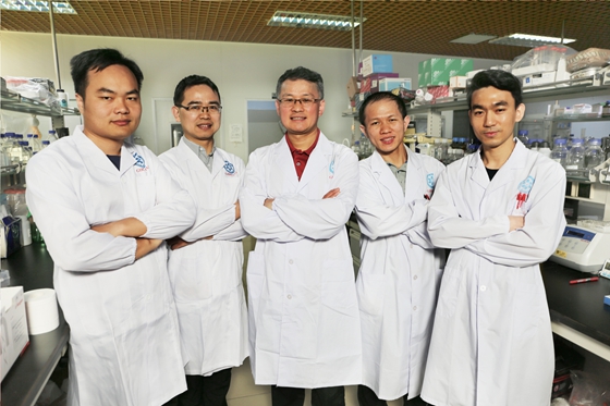 科研團隊合影(從左到右:李東偉、劉晶、裴端卿、曹尚濤、余勝勇)
