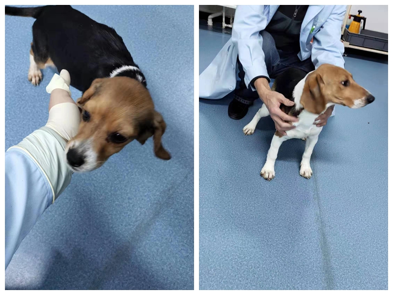 圖一:注射外源胰島素治療永久性新生兒糖尿病模型犬,左邊純合突變體,右邊嵌合突變體