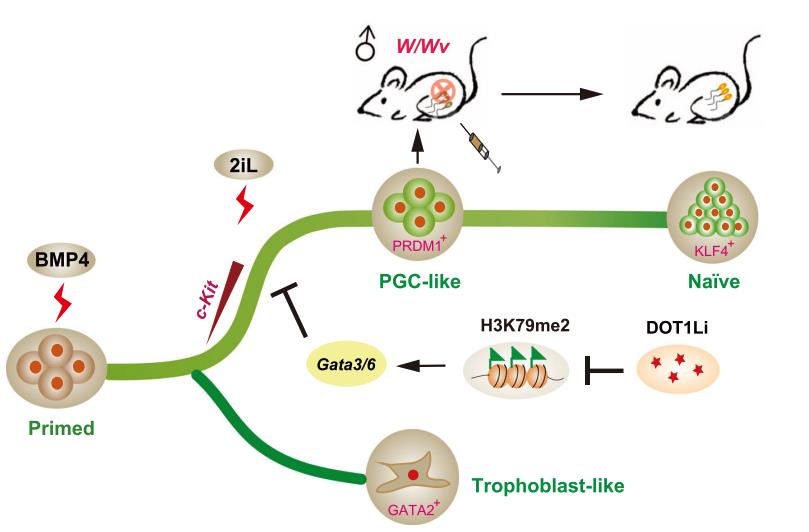 該研究發(fā)現(xiàn)了小鼠PNT轉(zhuǎn)變新型中間態(tài),建立了Primed態(tài)干細(xì)胞高效轉(zhuǎn)變?yōu)镻GCLC細(xì)胞的方法,揭示了Primed態(tài)干細(xì)胞轉(zhuǎn)變?yōu)镻GCLC細(xì)胞的表觀遺傳障礙,為PGC形成與特化的機(jī)制和功能研究提供了極好的體外研究模型。