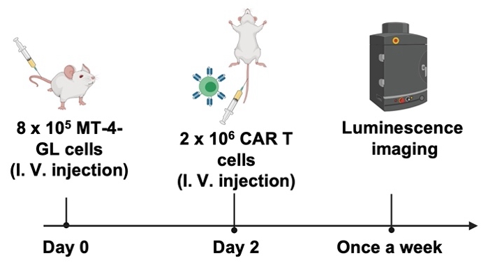 靶向CCR8 CAR T細(xì)胞治療MT-4小鼠模型的流程圖