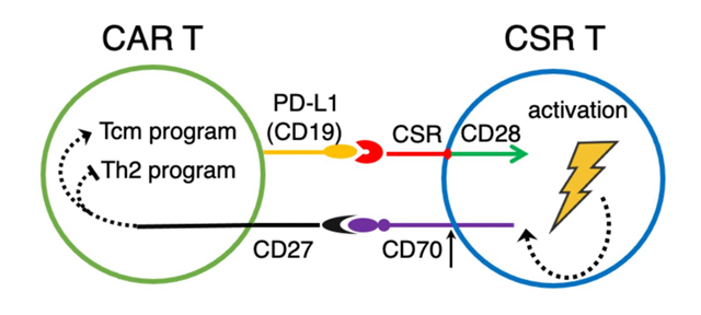 靶向CAR-T細(xì)胞表面抗原的CSR-T細(xì)胞經(jīng)CD70-CD27信號通路提升CAR-T細(xì)胞抗腫瘤活性概念圖