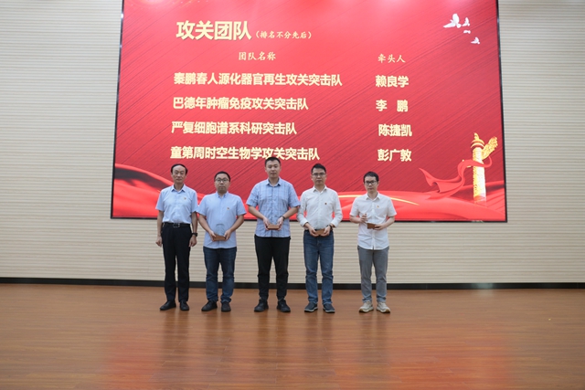 黨課報告后舉行了新黨員入黨宣誓儀式,全體參會黨員一起重溫了入黨誓詞,表彰了健康院“四強”黨支部和獲得中科院、廣東省等榮譽的先進個人,舉行了研究院科技攻關(guān)團隊的授牌儀式。