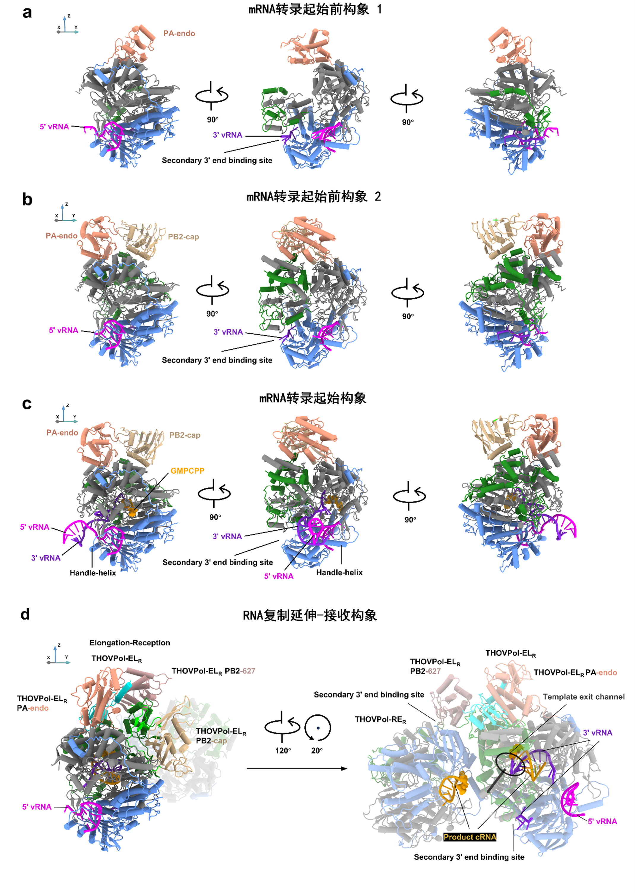 圖1??THOV 聚合酶在RNA合成過(guò)程中呈現(xiàn)不同的構(gòu)象