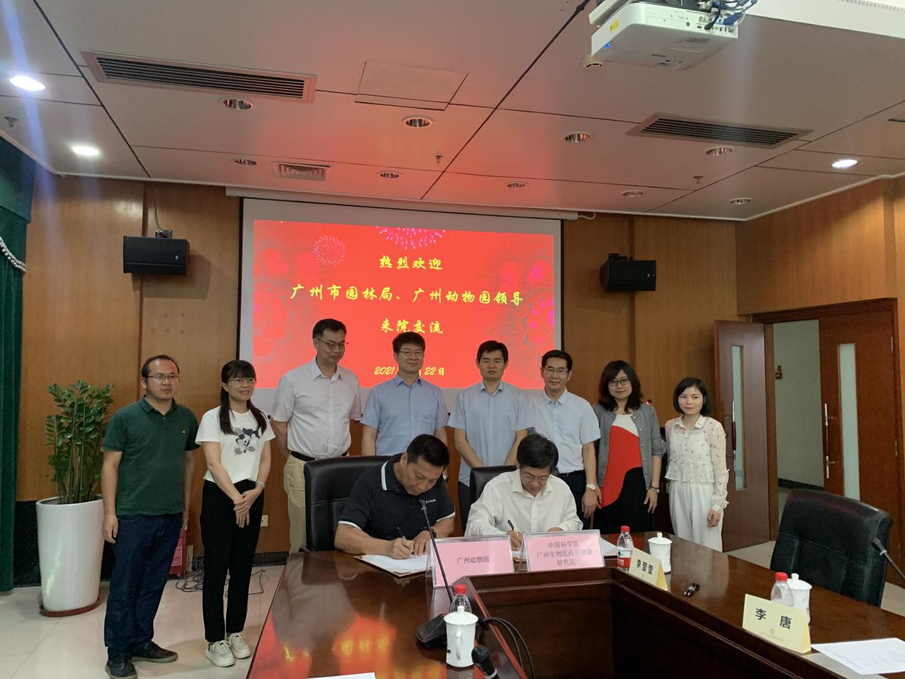 4月22日,廣州市林業(yè)和園林局副局長陳迅、廣州動物園主任鄧小兵等一行到中國科學(xué)院廣州生物醫(yī)藥與健康研究院(簡稱廣州健康院)進行交流訪問。廣州健康院院長陳新文、副院長潘光錦等接待了來賓一行。
