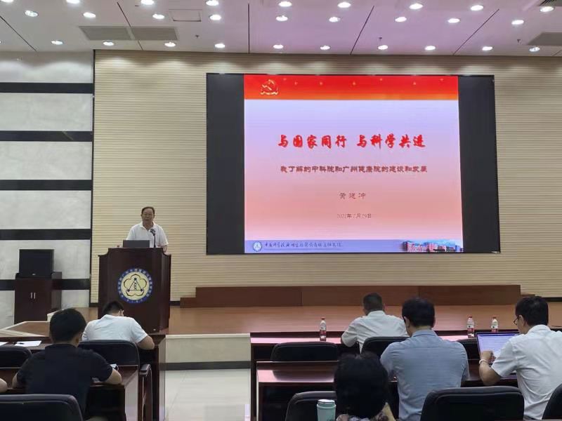7月29日上午,中國(guó)科學(xué)院廣州生物醫(yī)藥與健康研究院黨史學(xué)習(xí)教育領(lǐng)導(dǎo)小組邀請(qǐng)研究院原黨委書(shū)記黃建沖同志作題為《與國(guó)家同行與科學(xué)共進(jìn)》黨課報(bào)告。廣州健康院副院長(zhǎng)李尹雄主持會(huì)議,廣州健康院全體黨員、處級(jí)以上領(lǐng)導(dǎo)干部和師生員工參加了報(bào)告會(huì)。