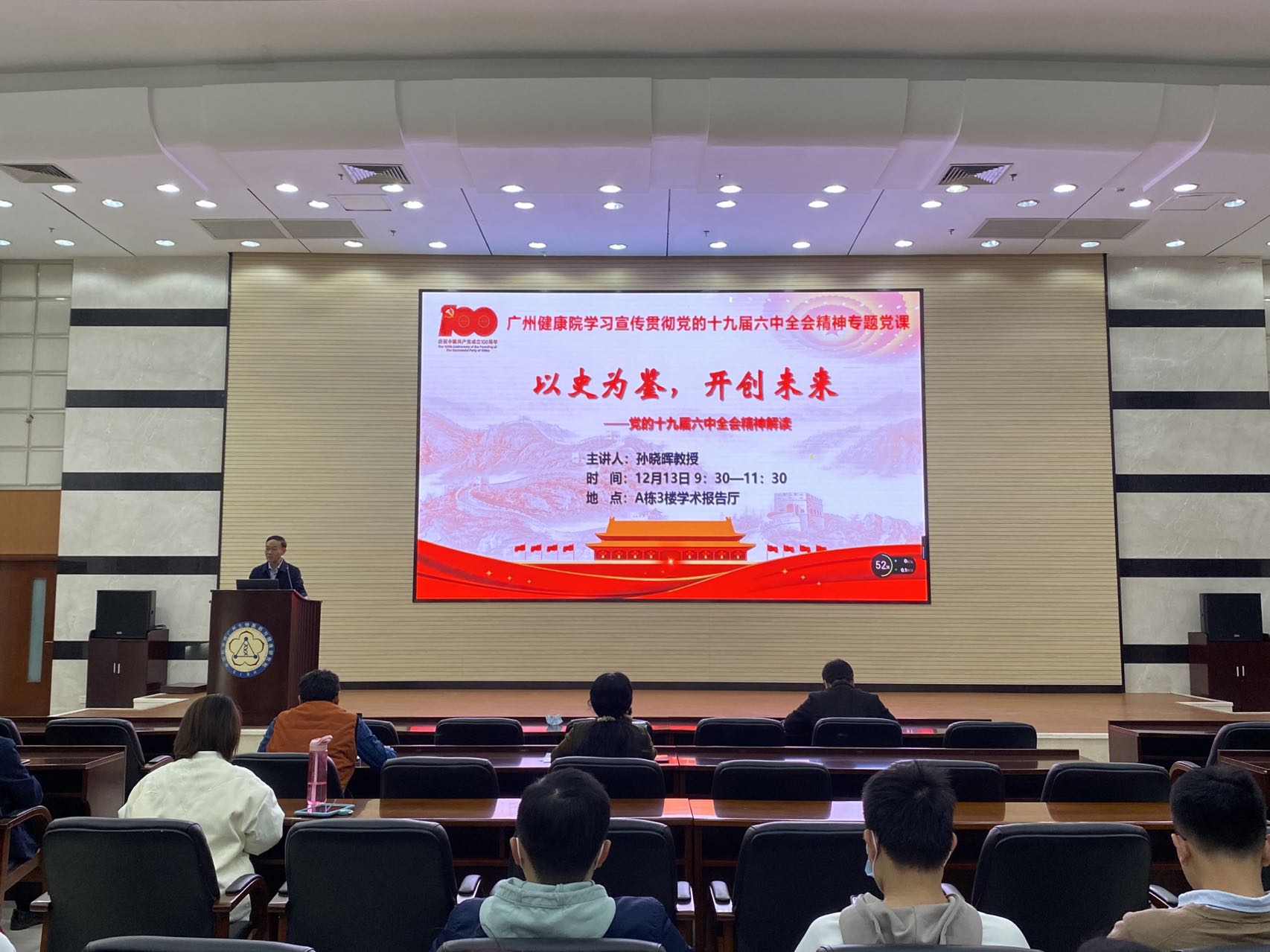 為深入學(xué)習(xí)宣傳貫徹黨的十九屆六中全會(huì)精神,12月13日上午,中國(guó)科學(xué)院廣州生物醫(yī)藥與健康研究院邀請(qǐng)廣東財(cái)經(jīng)大學(xué)馬克思主義學(xué)院孫曉暉教授作專題黨課報(bào)告。報(bào)告由黨委書記段子淵主持。