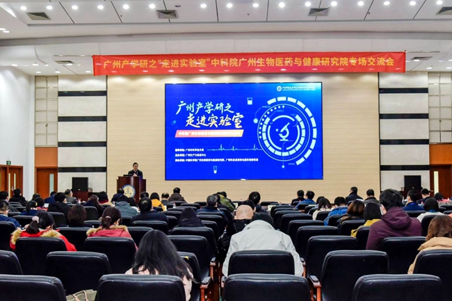 2月23日,廣州產(chǎn)學研之“走進實驗室”中科院廣州生物醫(yī)藥與健康研究院專場活動在我院舉辦,活動由廣州市科學技術(shù)局指導、廣州生產(chǎn)力促進中心主辦,廣州健康院和廣州科技成果轉(zhuǎn)化服務(wù)創(chuàng)新聯(lián)盟承辦?;顒訃@廣州健康院的支撐平臺和前沿項目,推進細胞標準化檢測、實驗動物、分析測試、生物醫(yī)學數(shù)據(jù)與超算等服務(wù)平臺和重點項目深度對接融合,60余名企業(yè)、高校、醫(yī)院代表參加活動。