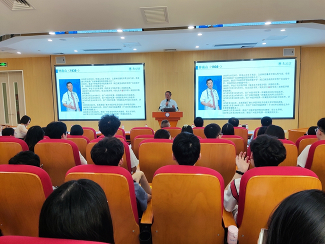 劉金保教授詳細講述了鐘南山院士早年投身醫(yī)學、求學英倫到成長為呼吸疾病領域的領軍人才,帶領廣州醫(yī)科大學砥礪前行、取得一系列突出成就等詳細情況;講述了鐘院士在抗擊非典和新冠肺炎疫情中的擔當作為和突出貢獻,生動闡釋了何為“南山風格”和“南山精神”。講座最后,劉金保教授對在座的同學寄予厚望,希望同學們以鐘院士為榜樣,傳承和弘揚“南山精神”,腳踏實地、艱苦奮斗,在中華民族偉大復興的逐夢之旅中奉獻青春力量、實現人生價值。