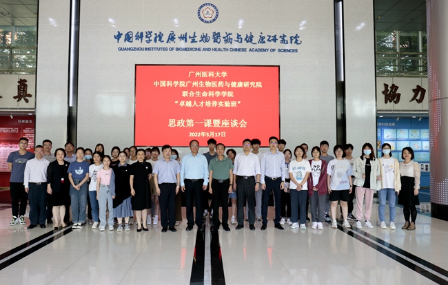 5月17日,中國科學院廣州生物醫(yī)藥與健康研究院-廣州醫(yī)科大學聯合生命科學學院(以下簡稱“聯合生科院”)思政第一課專題講座暨座談會在廣州健康院舉行,廣州醫(yī)科大學副校長劉金保教授為聯合生科院第四屆生物技術“卓越班”學生、廣州健康院師生做“弘揚和傳承南山精神”思政第一課專題講座。