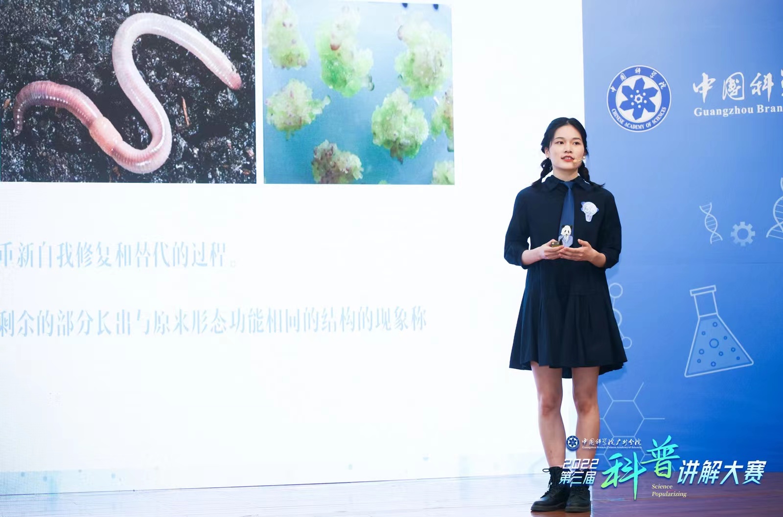 廣州健康院的5位選手圍繞健康院學(xué)科方向分別作了“干細(xì)胞,看我七十二變”、“新冠病毒‘皇冠’下的秘密”、“一種復(fù)活滅絕生物的神秘力量”、“從長生不老到再生醫(yī)學(xué)”、“一個(gè)不屬于我的細(xì)胞”的科普講解,將一線最新科研成果變成生動(dòng)有趣的語言,深入淺出、講解通俗易懂。短短4分鐘的講解,讓一個(gè)個(gè)科學(xué)知識(shí)變得淺顯易懂,得到了評(píng)委和觀眾的一致好評(píng)。