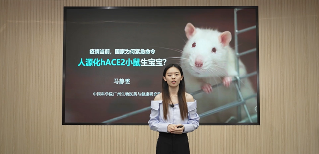 彭浩將干細(xì)胞比做會(huì)七十二變的孫悟空,以通俗易懂的語言帶觀眾走進(jìn)干細(xì)胞的世界,了解人類由受精卵發(fā)育而來、傷口愈合和緩解衰老的秘密。自新冠疫情流行以來,人們談“病毒”色變,高函函的講解科普了病毒的特征,病毒何以致病,倡導(dǎo)大家對(duì)病毒保持理性的態(tài)度。馬靜雯關(guān)注疫情當(dāng)前國家緊急命令人源化小鼠生寶寶的現(xiàn)象,講述作為動(dòng)物模型的小鼠對(duì)生物醫(yī)藥研發(fā)的重要作用。在人類經(jīng)濟(jì)活動(dòng)和自然環(huán)境的影響下,使許多動(dòng)物瀕臨滅絕,甚至滅亡,林丹妮科普了如何從生物學(xué)的手段走出復(fù)活滅絕生物的第一步。4名選手發(fā)揮自身專業(yè)優(yōu)勢,將生物醫(yī)藥與健康領(lǐng)域的專業(yè)知識(shí)通過生動(dòng)的語言、有趣的圖片向觀眾普及,贏得了評(píng)委老師的認(rèn)可。