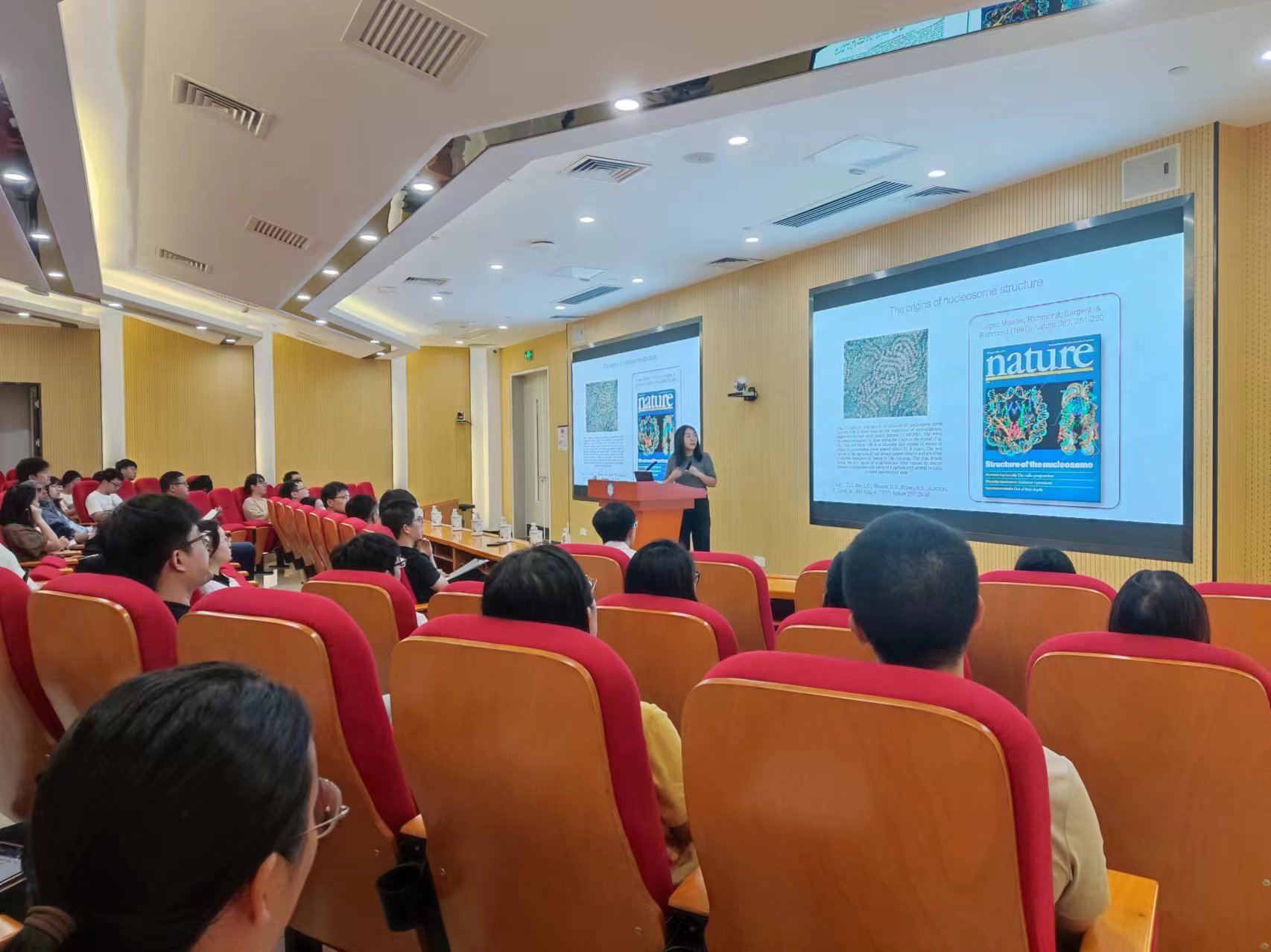 報(bào)告生動詳細(xì)地介紹了組蛋白的結(jié)構(gòu)和染色質(zhì)形成的過程,并向與會人員展示了課題組對結(jié)構(gòu)生物學(xué)的靈活運(yùn)用,引起了在場師生的深入思考。會后,廣州健康院多位研究員及學(xué)生與劉揚(yáng)教授展開了熱烈的討論。