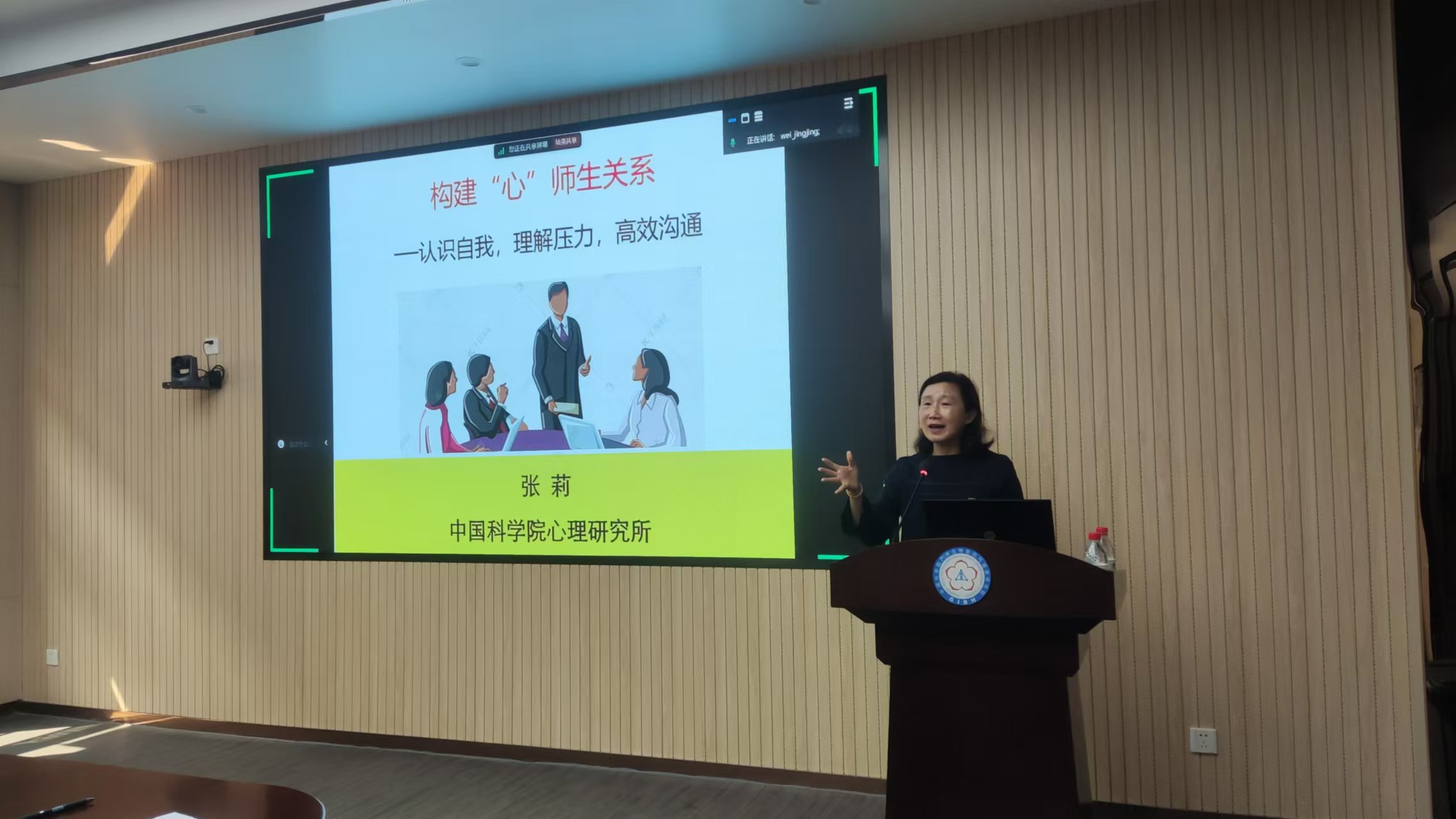 為加強人文關(guān)懷,關(guān)愛師生心理健康,構(gòu)建和諧師生關(guān)系, 8月28日,廣州健康院舉辦“構(gòu)建‘心’師生關(guān)系”“認(rèn)識自我、理解壓力、高效溝通”兩場專題心理健康培訓(xùn),邀請中國科學(xué)院心理研究所應(yīng)用發(fā)展部主任、中國科學(xué)院院工會心理健康服務(wù)中心副主任張莉主講。廣州健康院研究生導(dǎo)師、學(xué)生輔導(dǎo)員和學(xué)生參加培訓(xùn),同時通過線上方式面向中國科學(xué)院大學(xué)其他培養(yǎng)單位的研究生導(dǎo)師和學(xué)生直播。