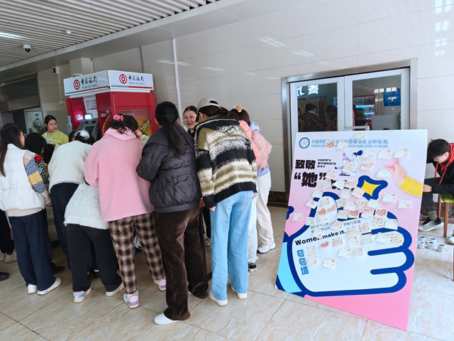 研究生公寓樓前,"致敬她力量"主題活動(dòng)別開(kāi)生面。晶瑩的玻璃珠在科研巧手中化作獨(dú)特手串,心愿墻上"祝福祖國(guó)""祝福GIBH"的寄語(yǔ)匯聚成奮進(jìn)宣言。