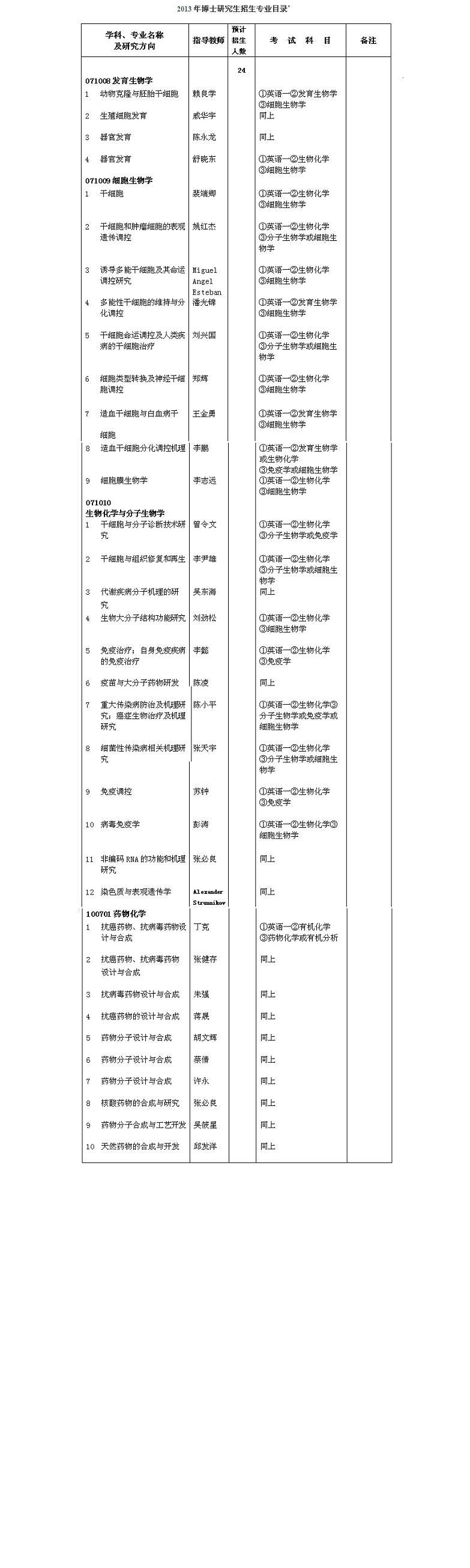 (*注:此招生專業(yè)目錄的“預(yù)計(jì)招生人數(shù)”僅供參考,實(shí)際招生數(shù)以2012年年底國(guó)家下達(dá)的計(jì)劃數(shù)為準(zhǔn);招生人數(shù)已含碩博連讀、提前攻博人數(shù),預(yù)計(jì)占實(shí)際招生人數(shù)的70%。)